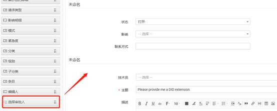 請進入“管理”->“服務目錄”->“選擇服務類別”->“選擇模板”->“拖放”選擇審批人字段”->“保存模板”